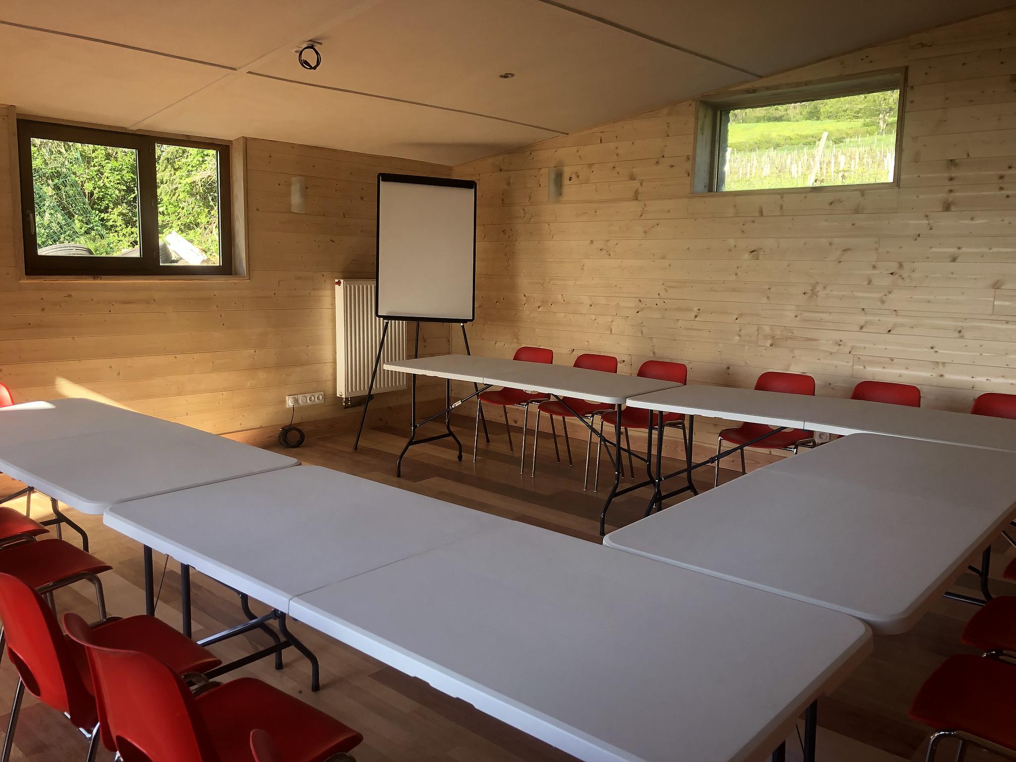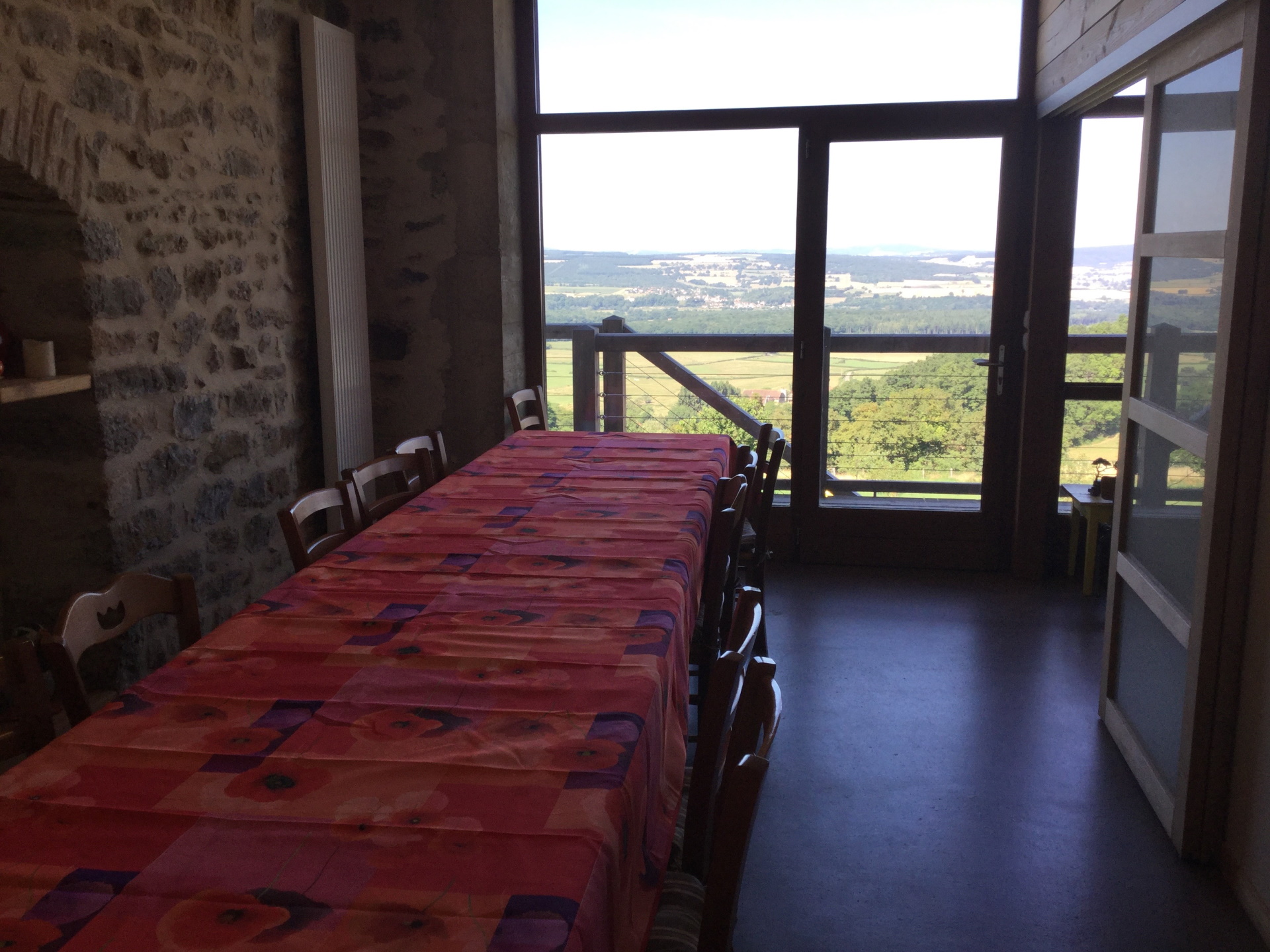 Une grande salle à manger, un salon et une cuisine sont à la disposition des hôtes.