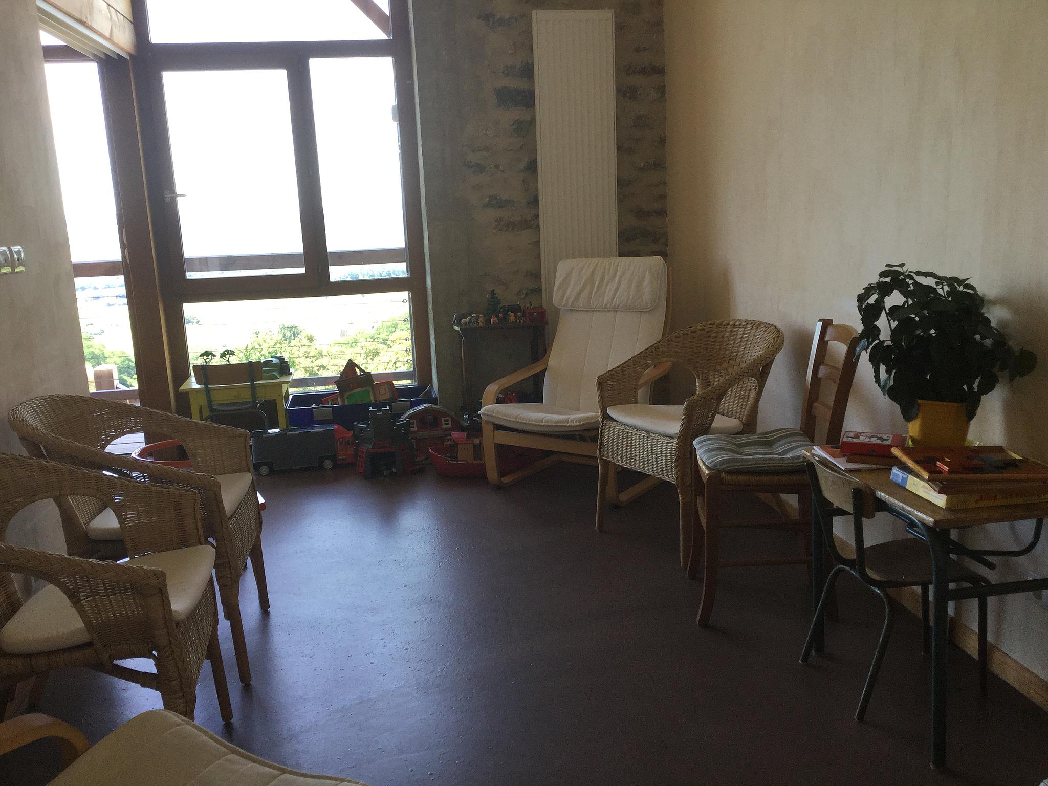 Située en Bourgogne du sud au milieu des vignes et bénéficiant d’une vue panoramique exceptionnelle sur la vallée de la Grosne de Cluny à Cormatin en passant par Taizé, La Moutonnerie vous accueille dans ses chambres d’hôtes, à vocation écologique : de la rénovation de la bâtisse à la vie au quotidien, le maximum est mis en oeuvre pour réduire l’impact écologique de ses hôtes et habitants, tout en offrant un très bon niveau de confort.Ancienne ferme, transformée en maison d’hôtes, nous vous proposons 5 chambres d’hôtes dont 2 suites familiales (chacune composée de 2 chambres avec 1 lit double et 2 lits jumeaux). 2 chambres sur 5 sont au RDC (1 est même accessible aux personnes à mobilité réduite).